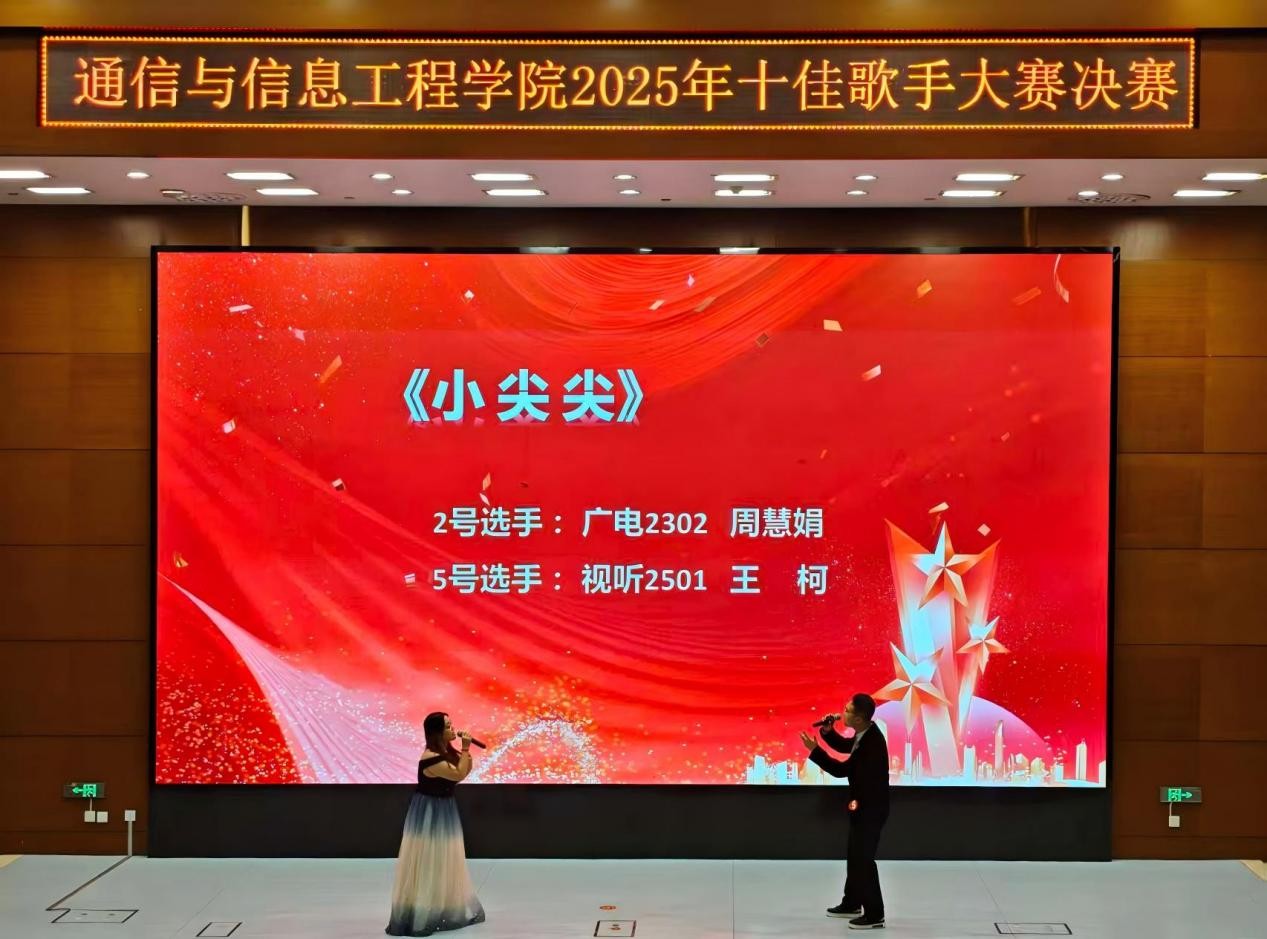 本次十佳歌手大赛吸引了全院各专业各年级近百名学子踊跃报名,经过初赛、复赛的激烈角逐,共有10名选手脱颖而出,进入决赛环节。决赛分为组合赛和个人赛两轮,组合赛阶段,10名选手两两一组共同演唱一首歌曲,各组选手配合默契、曲风多元,充分展现了通院学子的音乐素养与演唱实力,赢得现场观众阵阵喝彩,最终6名选手晋级第二轮。在个人赛环节,晋级选手轮流登场,用歌声生动诠释了当代青年学子的青春激情与理想追求。经过激烈比拼,通工2407班王贝妮获得一等奖,物联网2501班邢耀天、广电2301班樊茹和悦获得二等奖,电信2502班侯依扬、信工2501班李滨、广电2302班周慧娟获得三等奖。根据观众现场投票,通工2401班金睿浩获得最佳人气奖,通工2407班王贝妮、电信2502班侯依扬获得最佳组合奖。晚会在助演嘉宾通研2406班申佳昊的歌曲《等你下课》中落下帷幕。